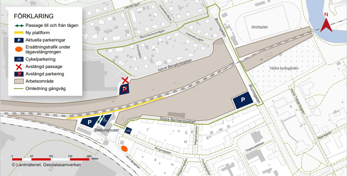 The existing northern pedestrian tunnel at Nyköping C will permanently close on 27 March. At the same time, a temporary pedestrian route along Brunnsgatan will open.